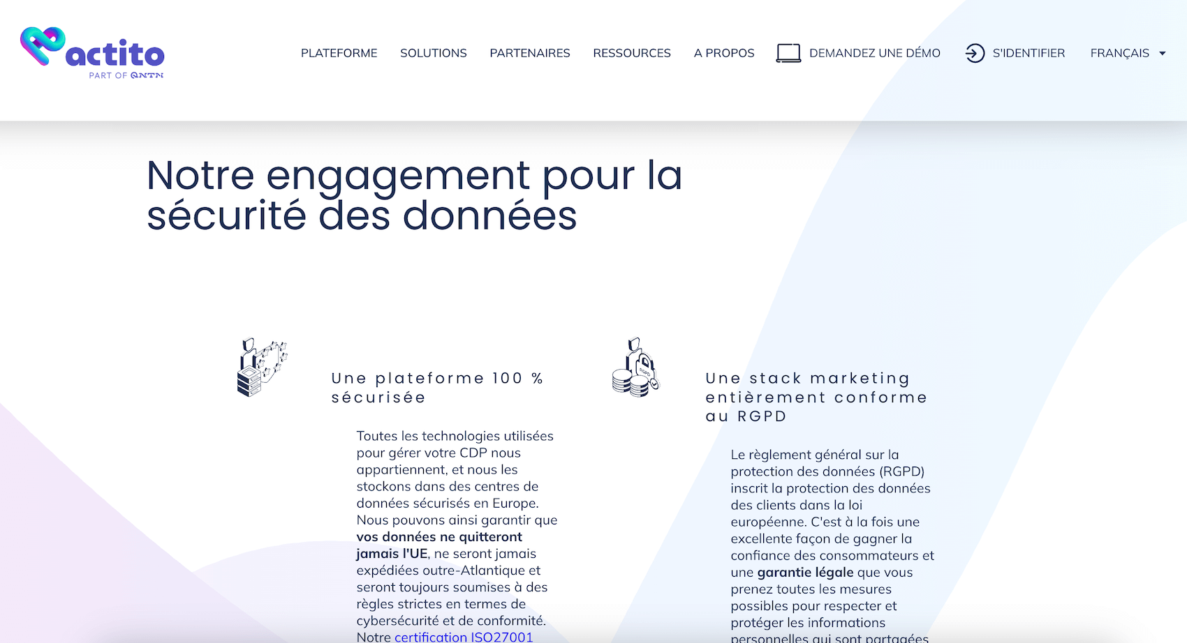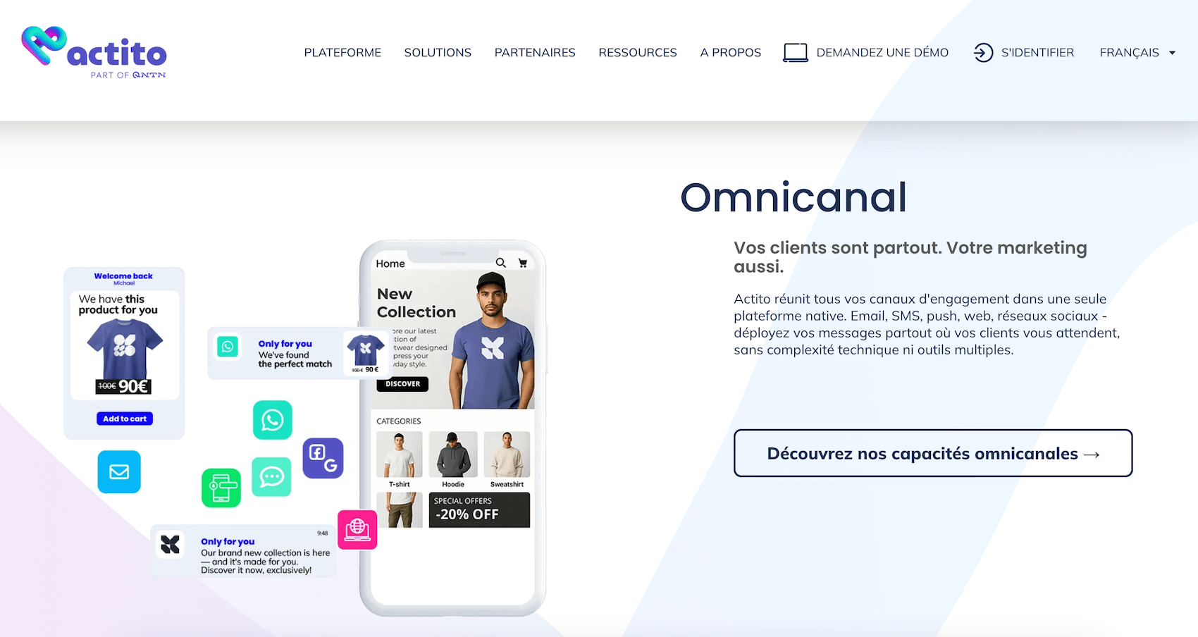 | Actito | Plateforme belge d’orchestration marketing et d’engagement client. Combine marketing automation, segmentation et personnalisation omnicanale. Se distingue par la proximité avec ses clients (support réactif, accompagnement) et un bon équilibre entre profondeur fonctionnelle et accessibilité. Hébergement européen. | ETI européennes souhaitant une solution complète avec accompagnement de proximité |