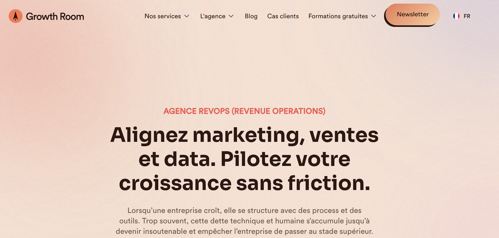 Growth Room, fondée en 2020, est une agence française qui combine expertise en Revenue Operations et accompagnement marketing. L’équipe intervient principalement sur la structuration des processus, l’alignement HubSpot/CRM et l’automatisation du pipeline commercial.